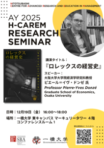 Speaker: Professor Pierre-Yves Donzé (Graduate School of Economics, Osaka University)